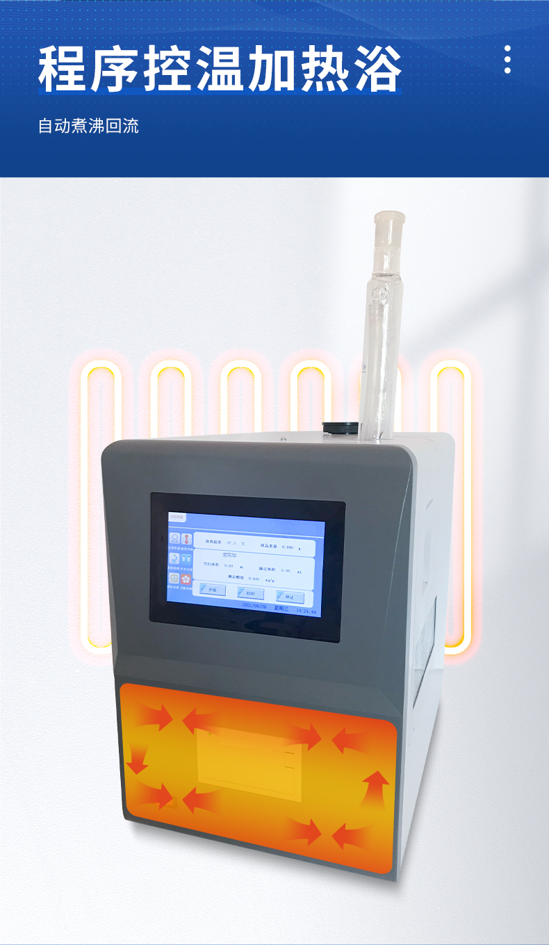 4、程序控溫加熱浴,自動(dòng)煮沸回流。