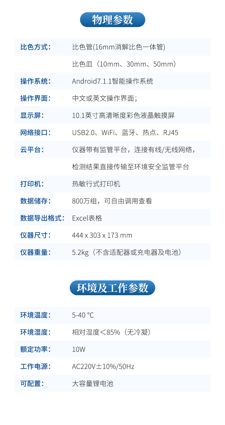 6、具有無線通訊功能,支持WIFI、RJ45、手機熱點聯(lián)網(wǎng)傳輸,檢測數(shù)據(jù)亦可通過U盤導出;