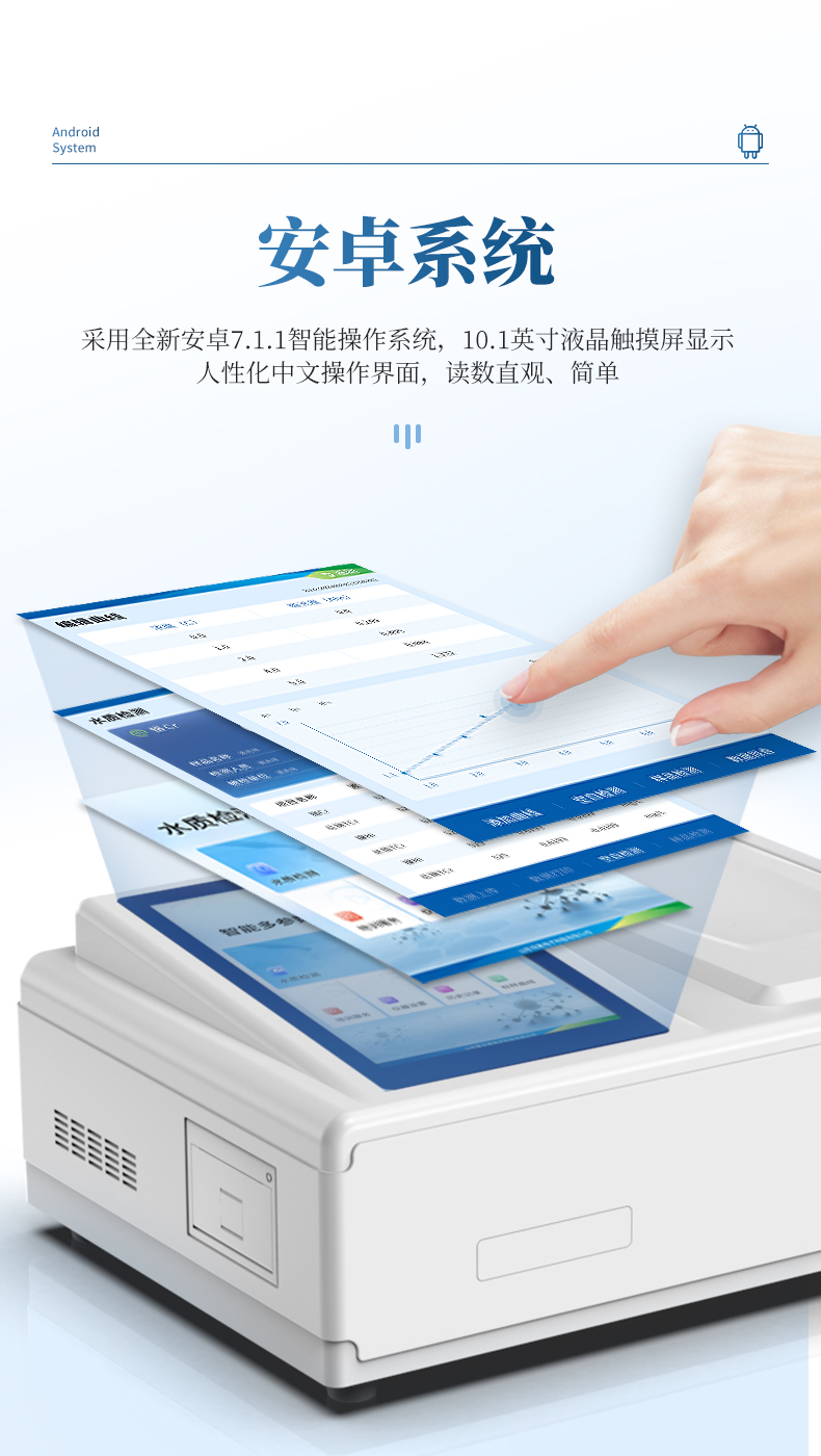 2、10.1英寸液晶觸摸屏顯示,人性化中文操作界面,讀數(shù)直觀、簡單。