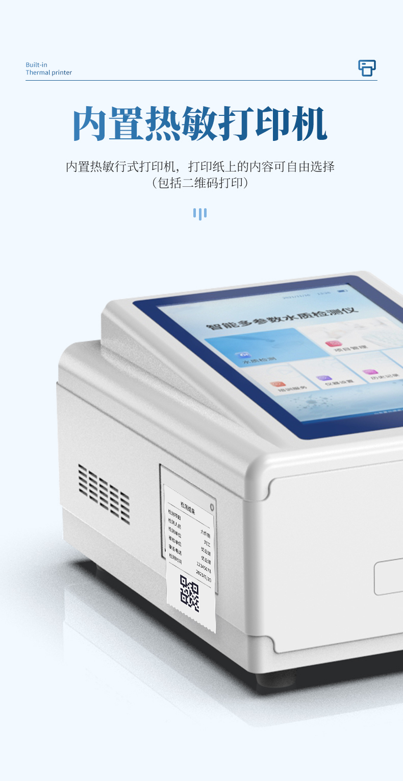 10、內(nèi)置熱敏行式打印機,打印紙上的內(nèi)容可自由選擇(包括二維碼打印);