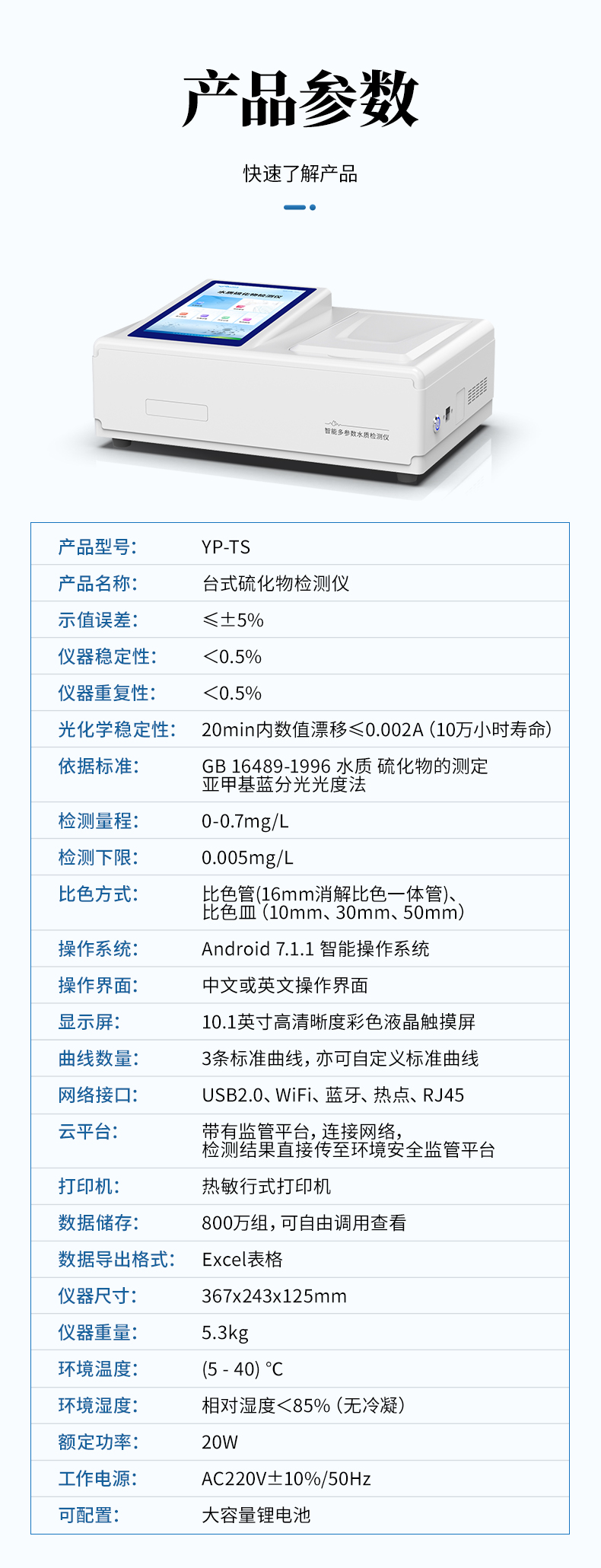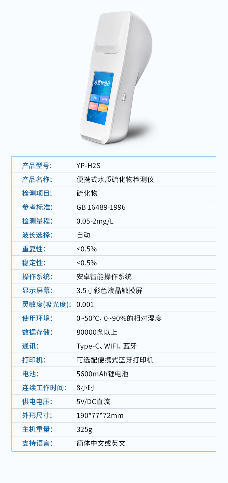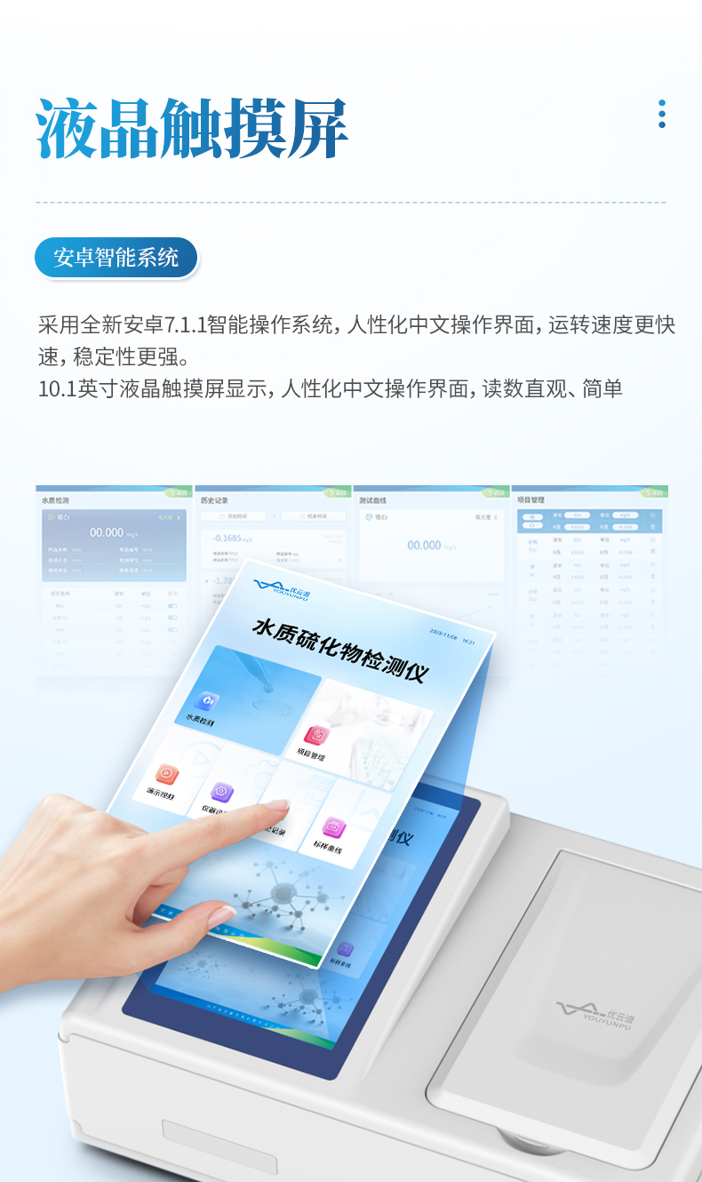 手持式硫化物檢測(cè)儀是參考《GB 16489-1996 水質(zhì) 硫化物的測(cè)定 亞甲基藍(lán)分光光度法》標(biāo)準(zhǔn)研發(fā)設(shè)計(jì),可方便快速測(cè)定水體中硫化物濃度指標(biāo)。儀器配備高清晰度彩色液晶觸摸顯示屏,Android智能操作系統(tǒng),中文顯示界面,中英文鍵盤,人性化操作,使用更簡(jiǎn)單;