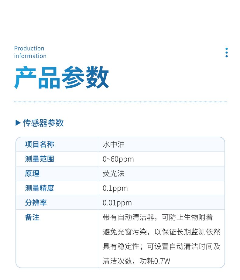 | 15 | cod | 0~500mg/ L | UV254 吸收法 | ±5% | 0.1mg/L | 帶有自動(dòng)清潔器,可防止生物附著,避免光窗污染,以保證長(zhǎng)期監(jiān)測(cè)依然具有穩(wěn)定性;可設(shè)置自動(dòng)清潔時(shí)間及清潔次數(shù),功耗0.7W | |