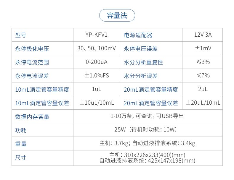 本卡爾費(fèi)休水分儀(容量滴定法)的測(cè)量精度符合JJG 1154-2018《卡爾·費(fèi)休容量法水分測(cè)定儀檢定規(guī)程》規(guī)定。