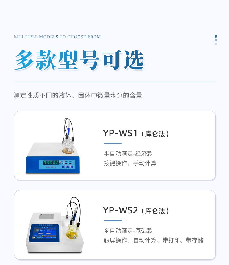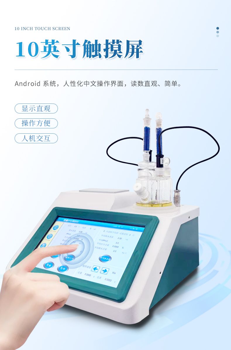 2.儀器具有試驗(yàn)結(jié)果存儲(chǔ)、打印、計(jì)算功能;樣品測(cè)定過(guò)程由儀器自動(dòng)控制,攪拌、測(cè)定60秒左右自動(dòng)完成,直接顯示測(cè)定結(jié)果;全密封滴定池瓶,避免試劑與人接觸,也避免環(huán)境濕度的影響;儀器中文液晶顯示,并具有自動(dòng)計(jì)算和打印功能,能打印出百分含量、樣品編號(hào)、試驗(yàn)員、實(shí)驗(yàn)日期等內(nèi)容;儀器準(zhǔn)確度為:①水含量小于10微克水時(shí),測(cè)量值誤差小于2ug水;②水含量在10微克-1000微克水時(shí),測(cè)量誤差≤2ug水;③水含量在1000微克以上時(shí),測(cè)量值誤差≤0.2%(不含進(jìn)樣誤差);