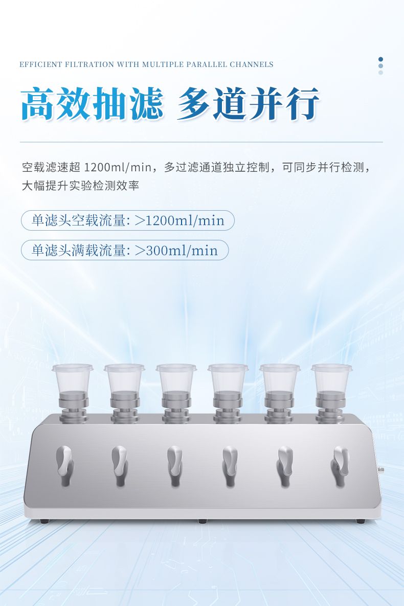 1.內(nèi)置隔膜泵設(shè)計(jì):采用高性能隔膜泵,噪音低、性能穩(wěn)定,無(wú)需外接抽濾瓶,樣品過(guò)濾后可直接排液,提高操作便捷性。