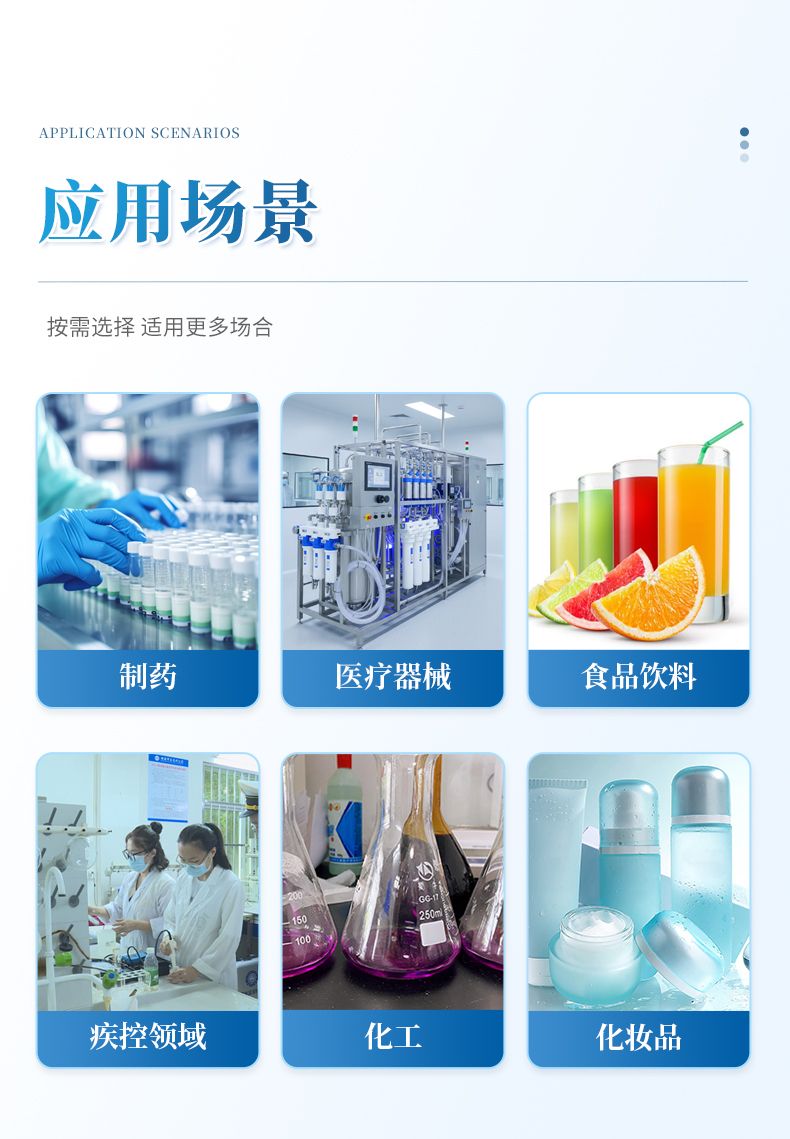 制藥行業(yè):適用于制藥用水(純化水、注射用水)、液體原料及非規(guī)定滅菌制劑藥品的微生物限度檢驗(yàn)。