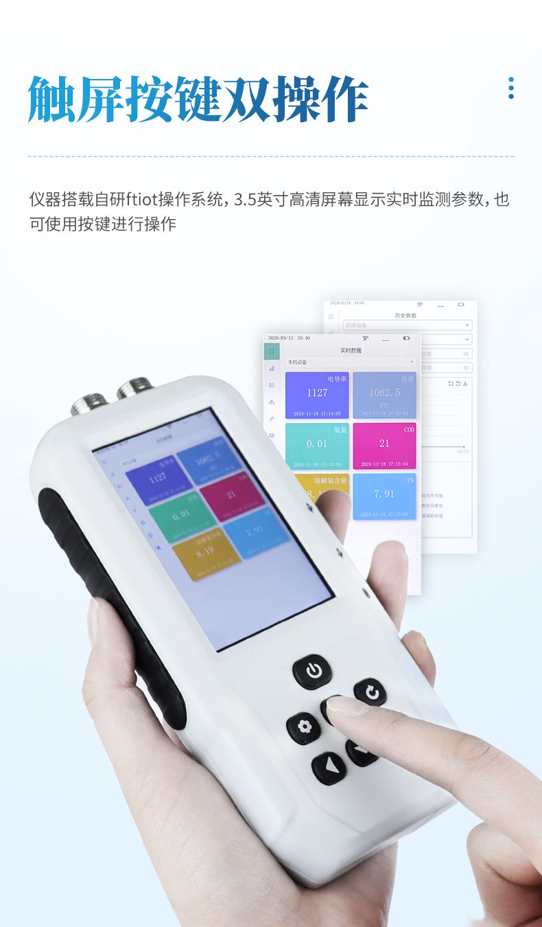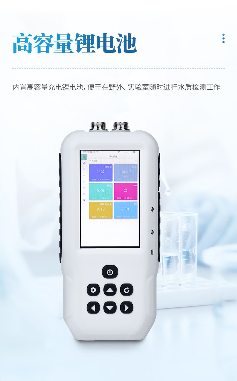 SS11S型號(hào)便攜式多參數(shù)水質(zhì)測(cè)定儀是一款電極法水質(zhì)分析儀器,采用全數(shù)字電極檢測(cè),可檢測(cè)水質(zhì)的污泥濃度參數(shù)。儀器搭載自研ftiot操作系統(tǒng),操作簡(jiǎn)單、性能穩(wěn)定、測(cè)量準(zhǔn)確、檢測(cè)范圍廣,內(nèi)置高容量充電鋰電池,便于用戶在野外、實(shí)驗(yàn)室隨時(shí)進(jìn)行水質(zhì)檢測(cè)工作。