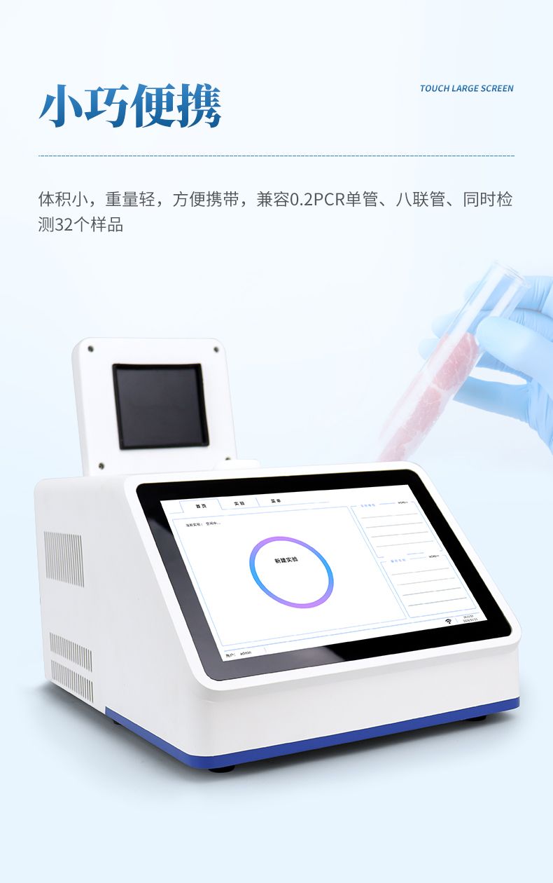 1、體積小,重量輕,方便攜帶,兼容0.2PCR單管、八聯(lián)管、同時(shí)檢測(cè)8個(gè)樣品;