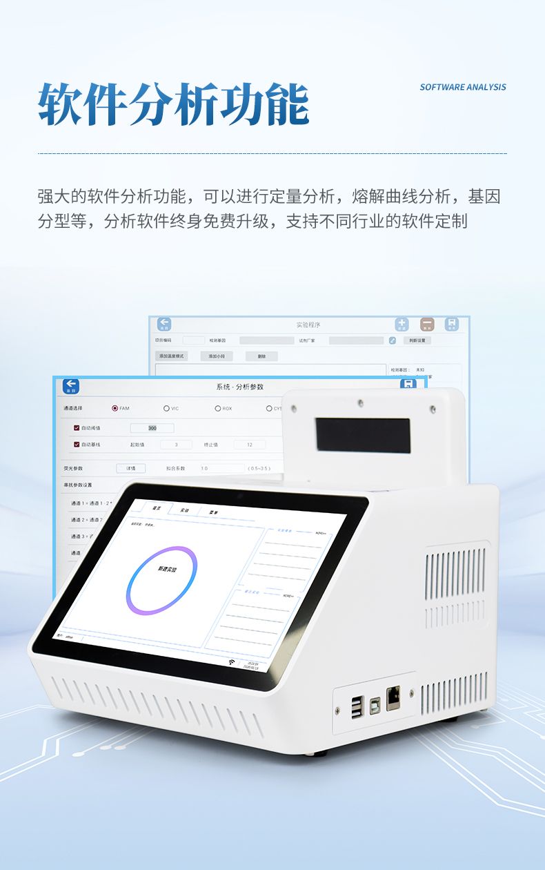 8、強(qiáng)大的軟件分析功能,可以進(jìn)行定量分析,熔解曲線分析,基因分型等,分析軟件終身免費(fèi)升級(jí),支持不同行業(yè)的軟件定制;