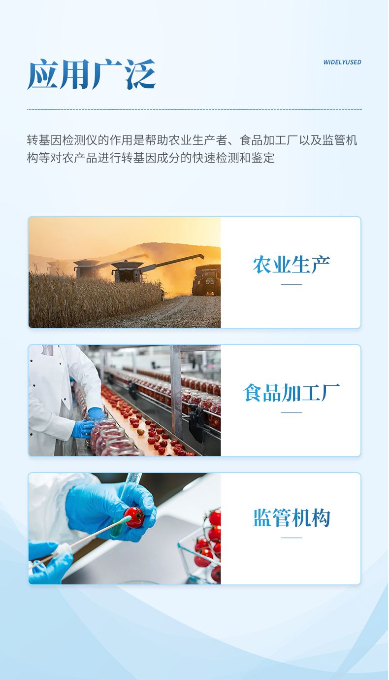轉(zhuǎn)基因檢測儀的使用可以幫助農(nóng)產(chǎn)品生產(chǎn)者和相關(guān)部門確保農(nóng)產(chǎn)品的品質(zhì)和安全性,并確保符合相關(guān)法規(guī)和標準。這對于消費者的食品選擇和信息透明也非常重要。
