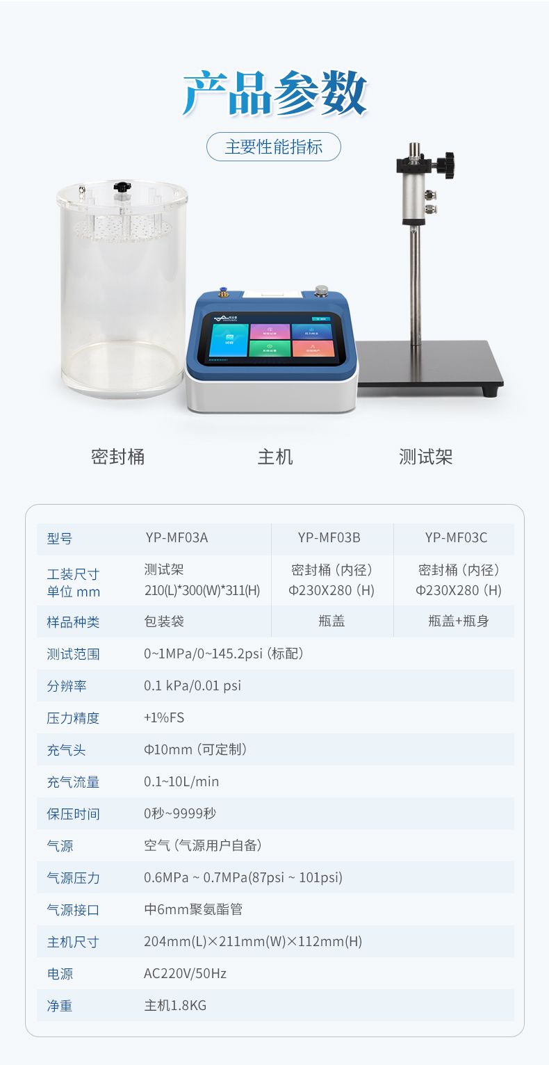 泄漏與密封強(qiáng)度測(cè)試儀,專業(yè)適用于各種熱封、粘接工藝形成的軟包裝件、無(wú)菌包裝件等各封邊的封口強(qiáng)度、熱封質(zhì)量、以及整袋脹破壓力、密封泄漏性能的量化測(cè)定;對(duì)軟包裝袋所使用材料的抗壓強(qiáng)度、耐破強(qiáng)度等指標(biāo)分析;各種塑料防盜瓶蓋密封性能、瓶蓋連接脫扣強(qiáng)度、材料的應(yīng)力強(qiáng)度的量化測(cè)定;瓶體密封性、抗壓性、耐破性等評(píng)估分析。通過(guò)正壓法來(lái)進(jìn)行測(cè)試,模擬實(shí)際使用環(huán)境下的密封強(qiáng)度、泄漏性能和耐壓極限,為各行業(yè)的包裝質(zhì)量管控提供可靠的依據(jù)。
