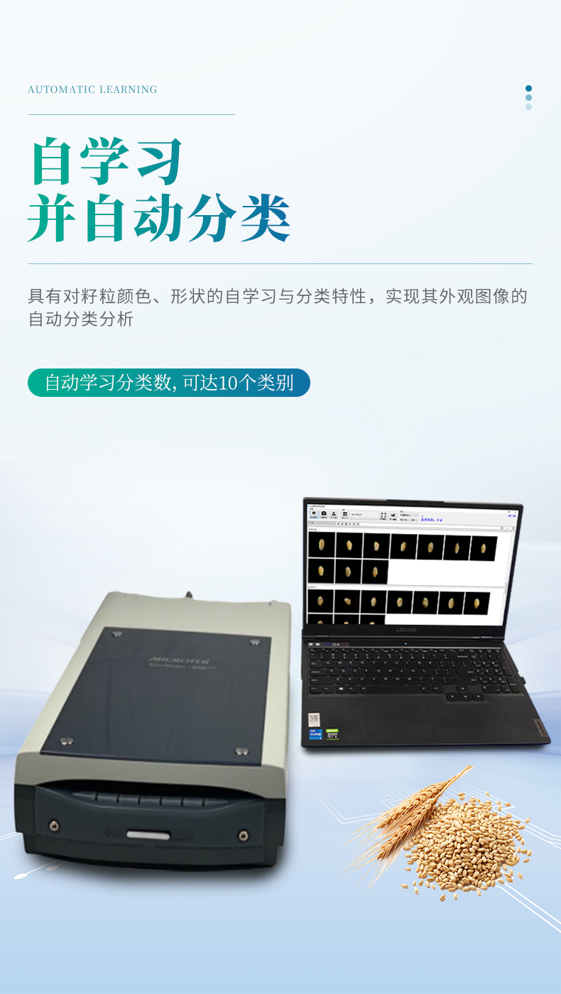 6.具有按園林協(xié)會(huì)RHS2015比色卡的自動(dòng)比色特性,根據(jù)正常籽粒與各類非常籽粒顏色、紋理、形狀上的差異來(lái)自動(dòng)識(shí)別與分類分析,具有對(duì)籽粒顏色、形狀的自學(xué)習(xí)與分類特性,實(shí)現(xiàn)其外觀圖像的自動(dòng)分類分析(自動(dòng)學(xué)習(xí)分類數(shù)*多可達(dá)10個(gè)類別)