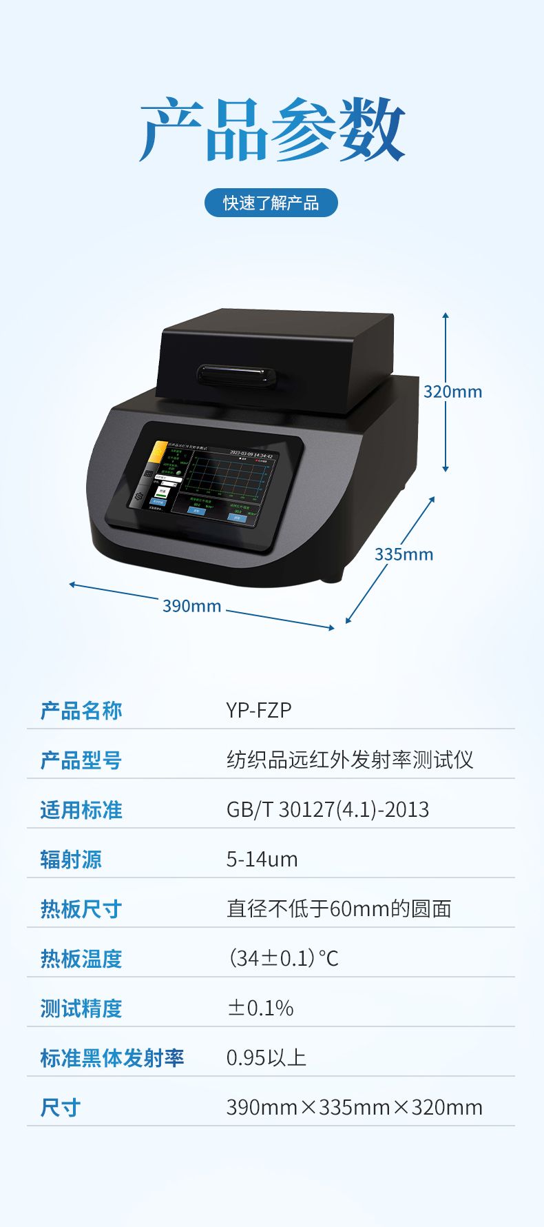 用于測(cè)量紡織品遠(yuǎn)紅外線(xiàn)發(fā)射率。