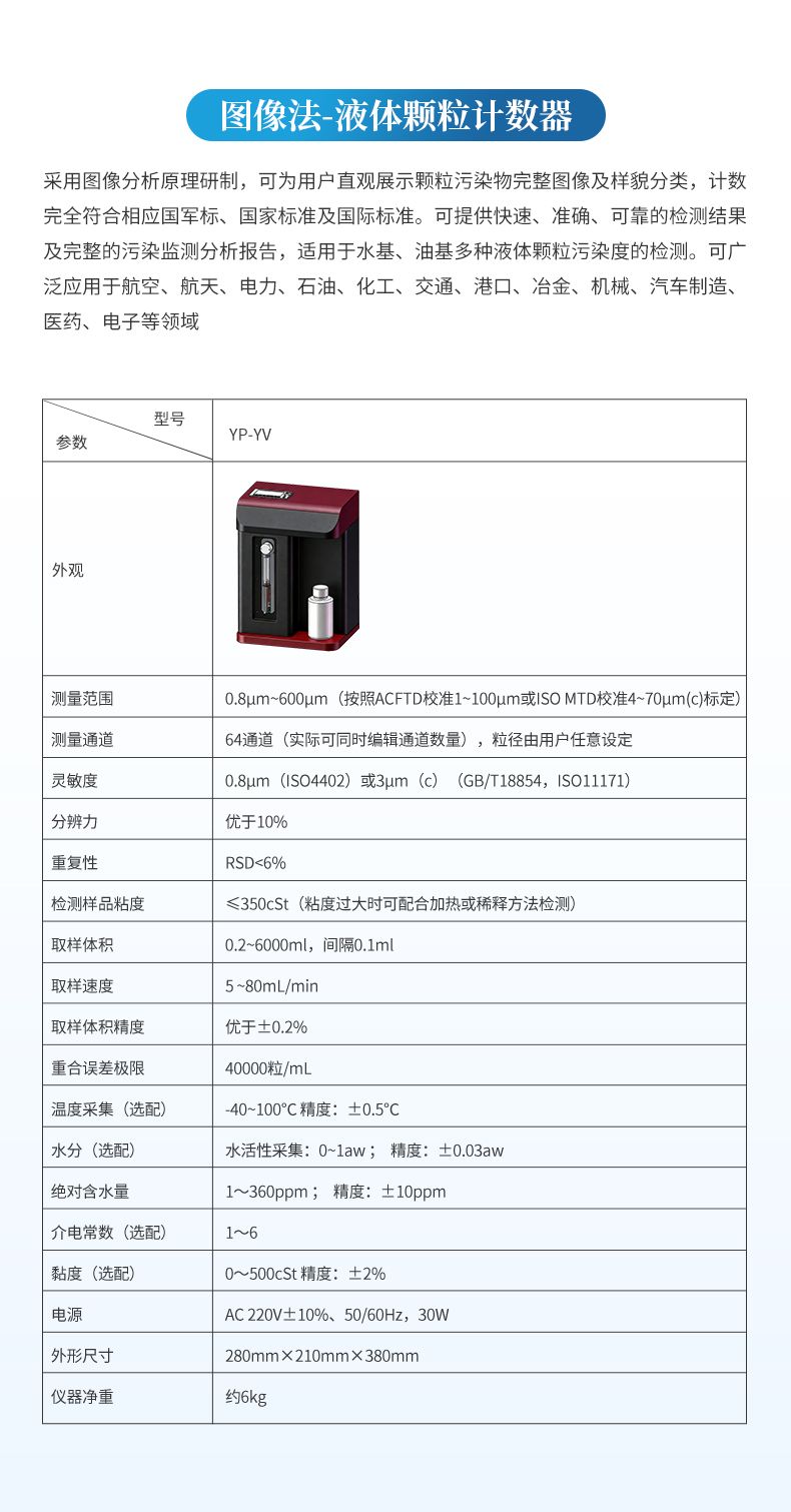 適用于現(xiàn)場的在線檢測,可實(shí)時(shí)監(jiān)測用油系統(tǒng)中的顆粒污染度