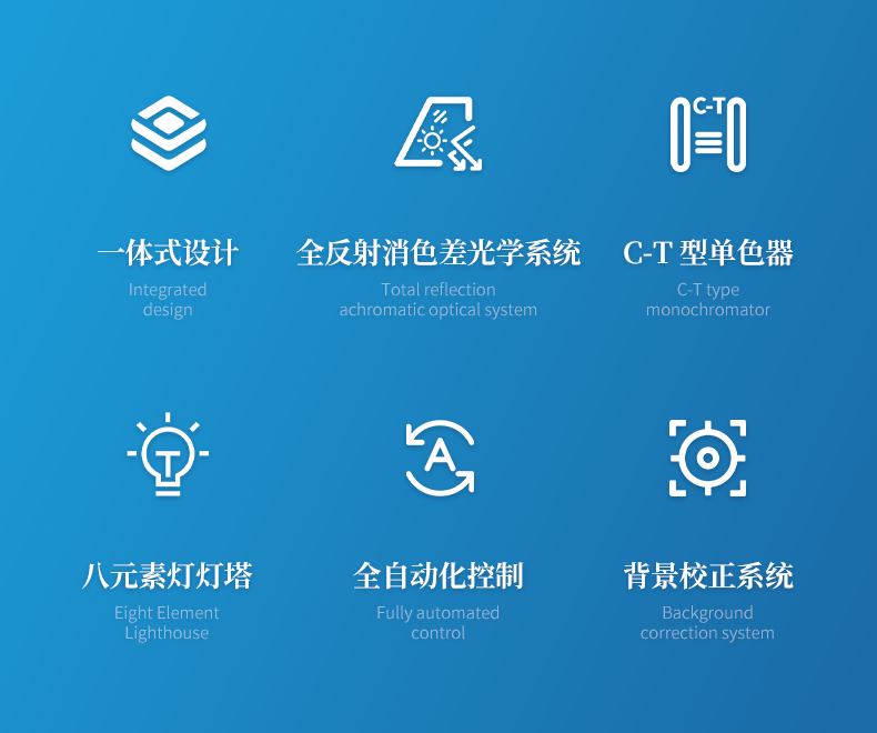 采用 1800 線/mm、閃耀波長 230nm 光柵分光系統(tǒng)。