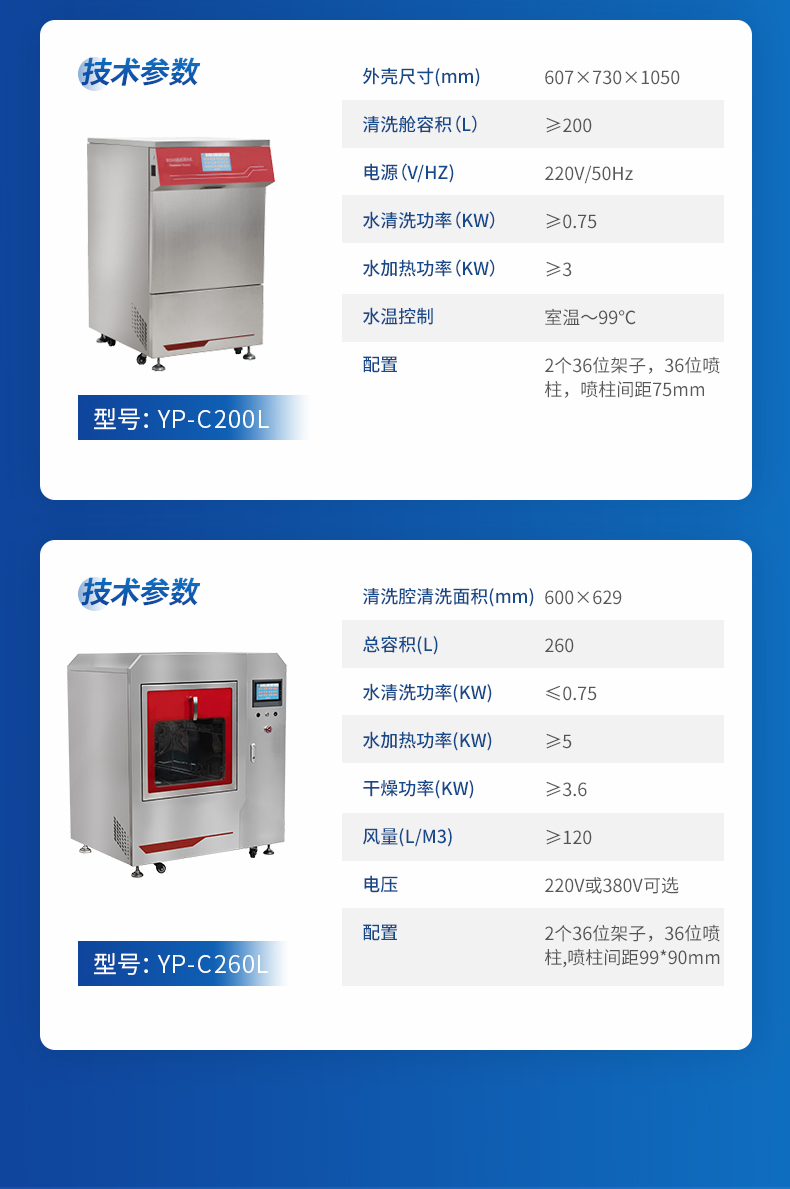 7.1 總?cè)莘e260L;清洗腔清洗面積600mm×629mm,具有更大的清洗量;