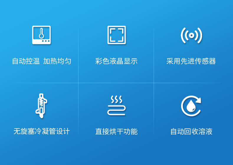5.★采用先進(jìn)的傳感器,確保設(shè)定的溫度保持不變,使用溶劑不會達(dá)到燃點(diǎn),提高系