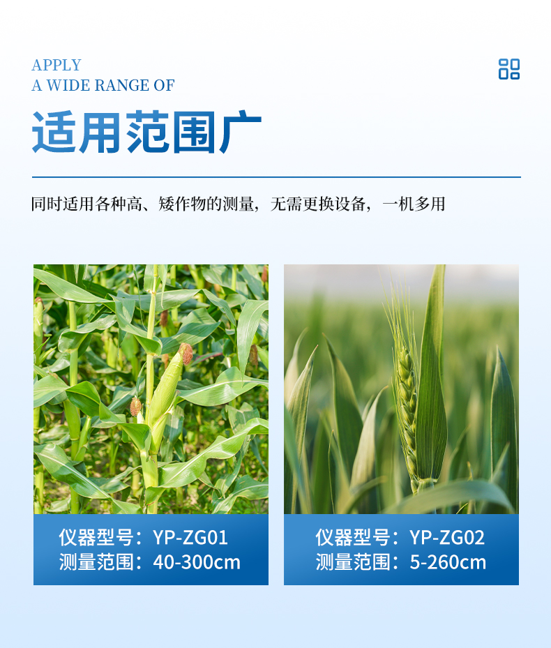 2.適用范圍廣-可同時適用各種高、矮作物的測量,無需更換設(shè)備,一機多用