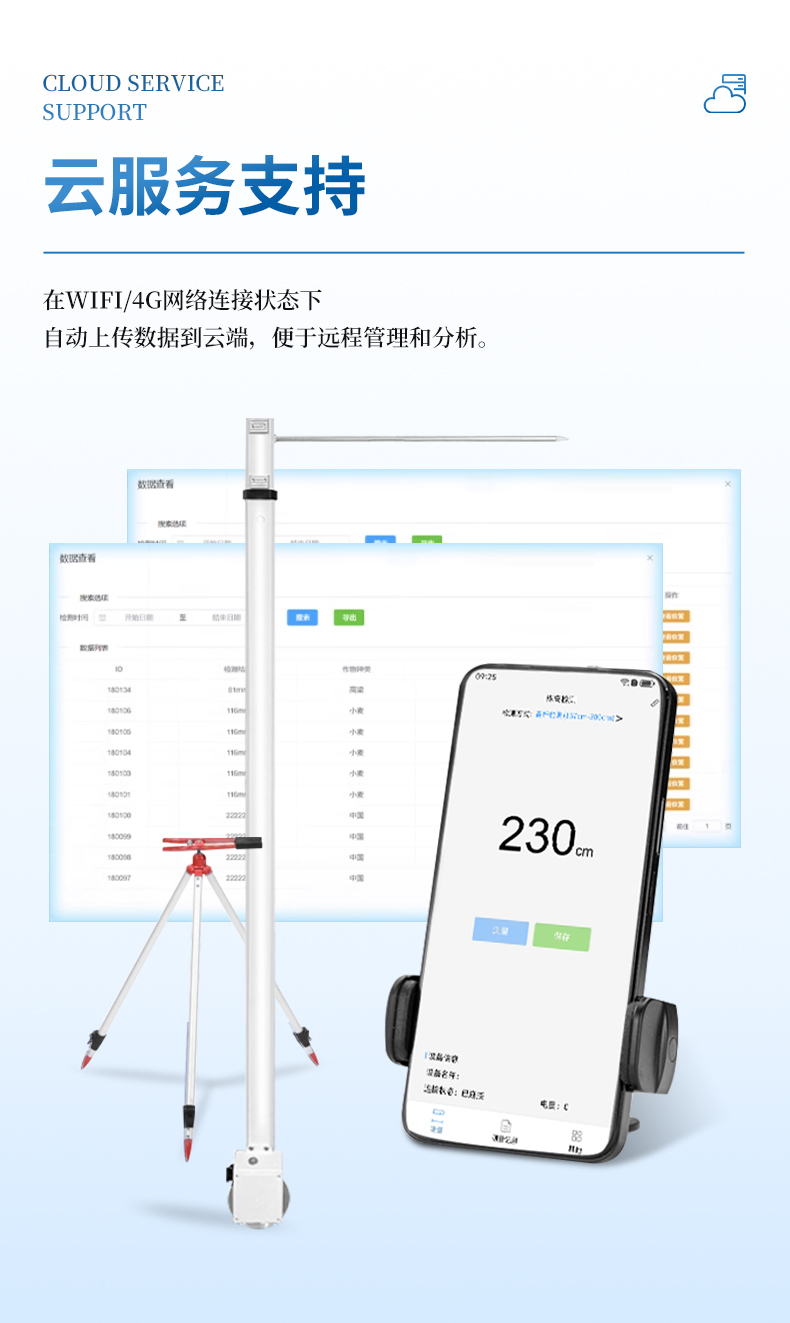 10.廣泛應(yīng)用性 - 最大測量高度可達3米,適用于大多數(shù)類型的農(nóng)作物株高測量需求。