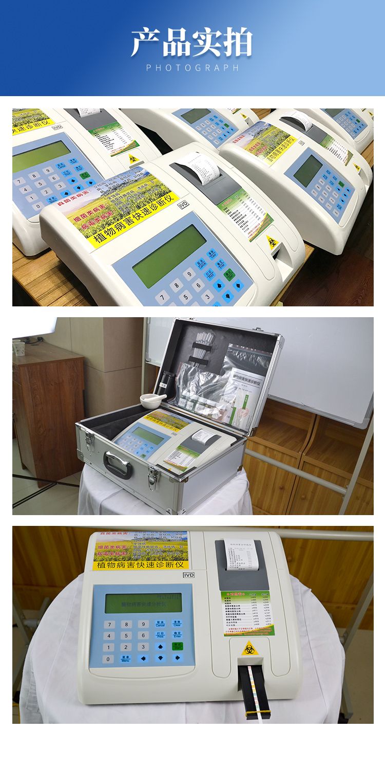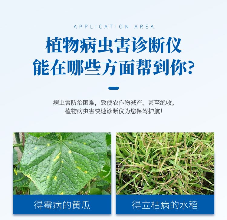 植物病害的檢測是一種復(fù)雜的化學(xué)和物理過程,從實(shí)驗(yàn)室走入實(shí)際應(yīng)用一直是人們追求的目標(biāo),該儀器能夠快速分析確定各種農(nóng)作物病害的種類。為如何防治病害及用藥提供了科學(xué)理論依據(jù),為農(nóng)場主和農(nóng)戶帶來了極大的便利。