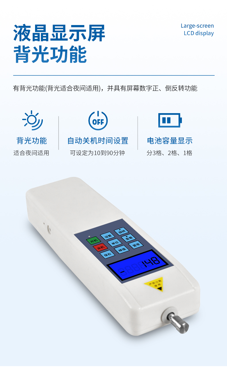 最大負荷:500N (其他量程可定制,N、Kg和ib三種單位可自動轉換)